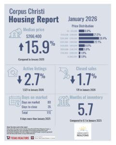 Here is a look at the Corpus Christi real estate market from January 2026.