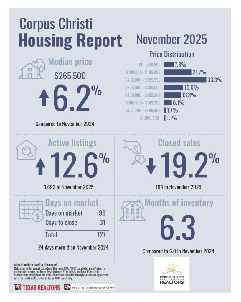 Here is a look at the Corpus Christi real estate market from November 2025.