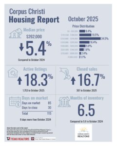 Here is a look at the Corpus Christi real estate market from October 2025.
